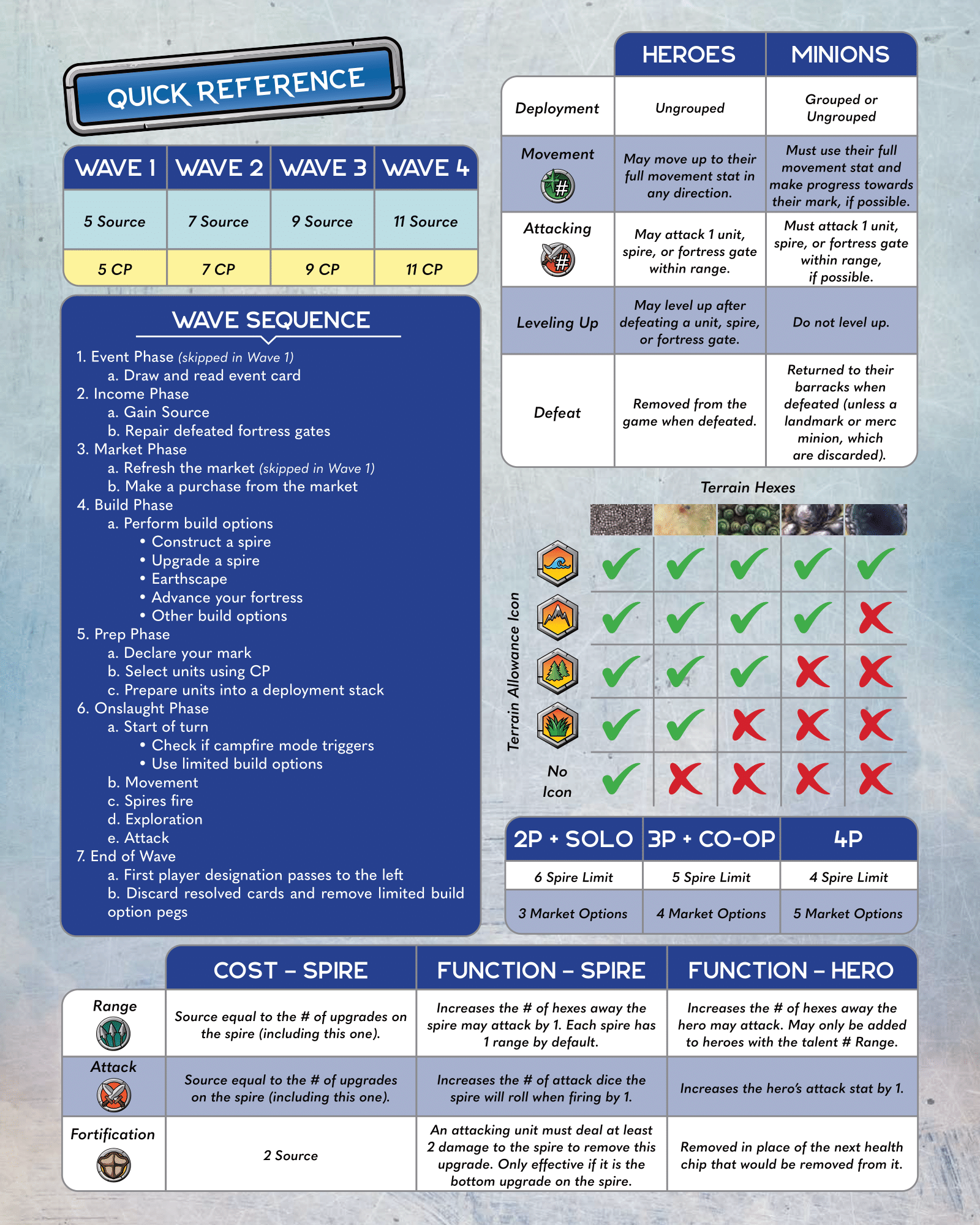 - Use Limited Build Options: You may construct or upgrade a spire a maximum of 2 times during each Onslaught Phase. Place a peg in the holes at the bottom of your fortress to track usage.